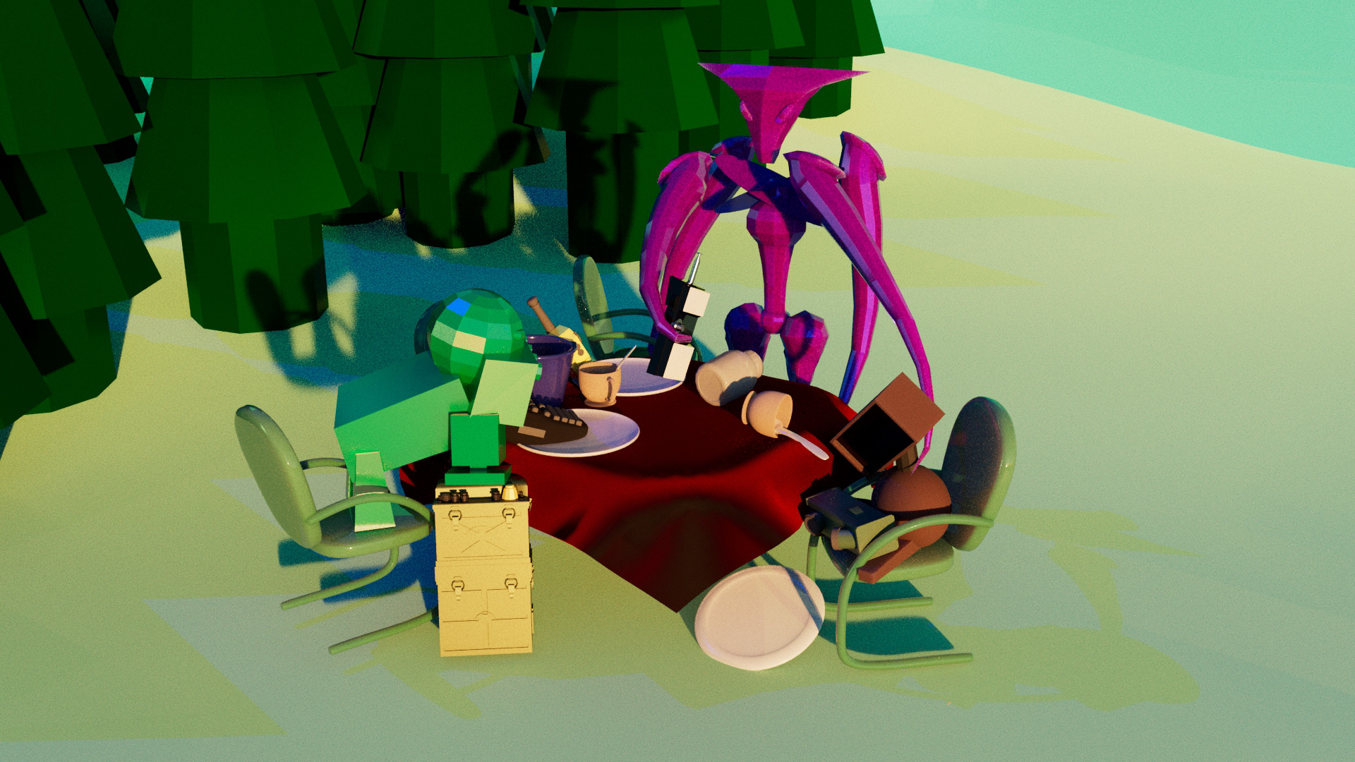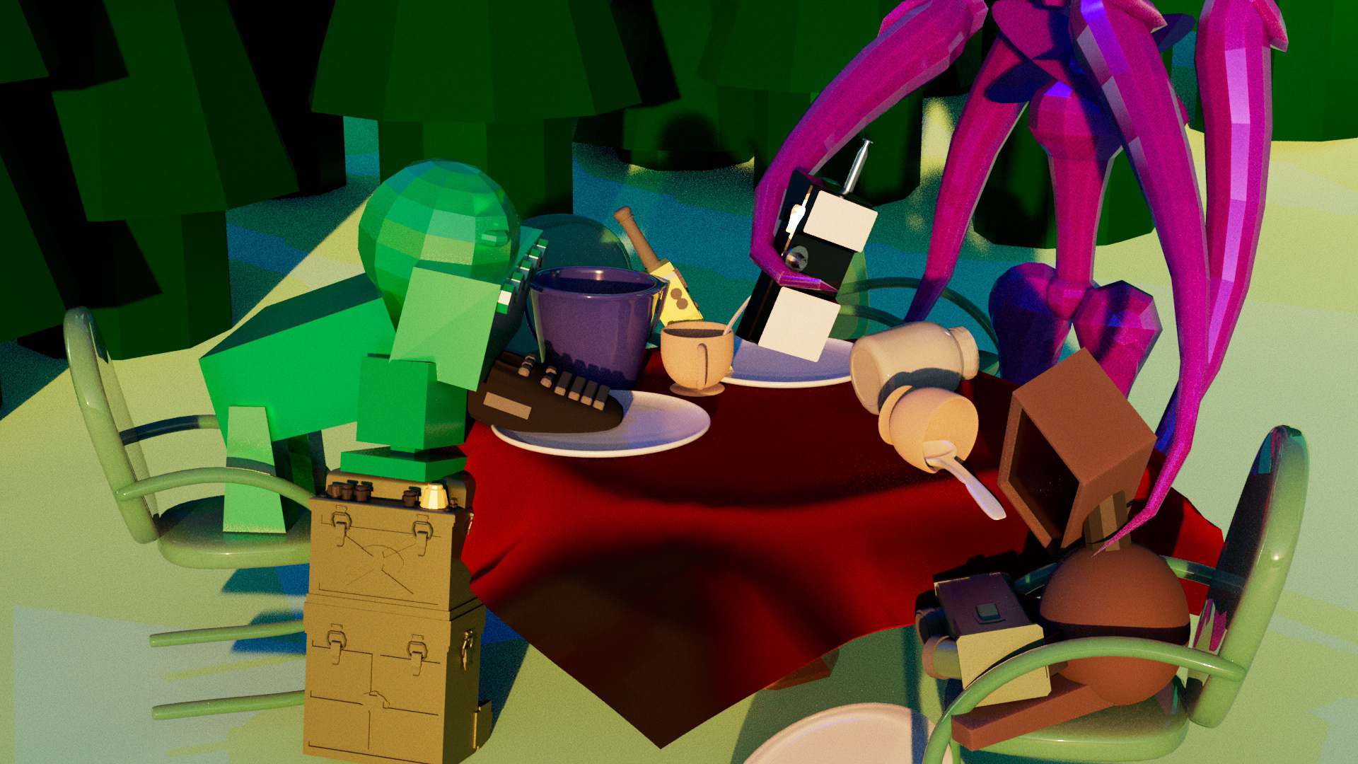 'Robot Tea Party' - 3D Modeled Scene in Maya